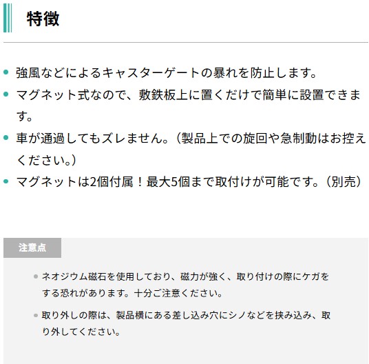 アラオ ゲートストッパー 【1本】 56w×600L×20t スチール+ネオジウム磁石2ヶ付