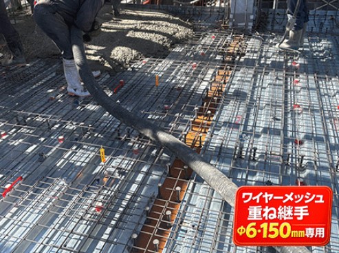 この製品は、建築工事標準仕様書(JASS5)や公共建築工事標準仕様書に基づいた、規定の重ね継手150mmに対応しています。